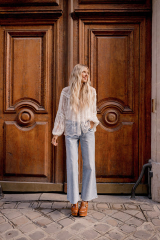 Introducing new arrivals as seen on Elle Ferguson. Femme, romantic with intricate lace details in a palette of dreamy whites and baby blue.